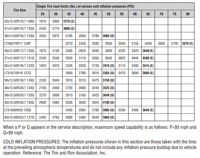 Size Ply Rating O.D. (in) S.W. (in) Max Load (LBS) Max PSI Tread Depth (1/32) Rim Size 30*9.5R15LT 104Q OWL C 29.5 9.4 1984 50 18.5 7.5 31*10.5R15LT 109Q OWL C 30.5 10.7 2270 50 18.5 8.5 ... View Doc